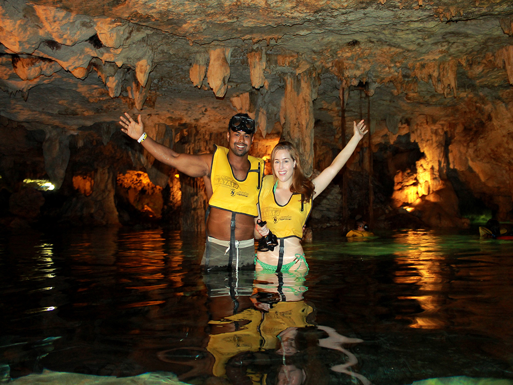 Later on, feel like Tarzan as you fly above the jungle canopy on a thrilling zip line and top it all off by jumping into a magical sinkhole in the very midst of the jungle. Then explore a fascinating underground river filled with crystal-clear waters and discover the mystical wonders of the Mayan cenotes. Wrap the day up with a savoury Mexican cuisine.