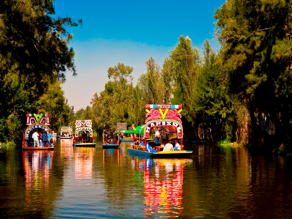Next and final stop on the tour is Xochimilco, where we enjoy a boat ride in a Mexican gondola, a trajinera, on the canals that characterise this area. We might even hear the renowned Mariachi bands as they play to serenade visitors!