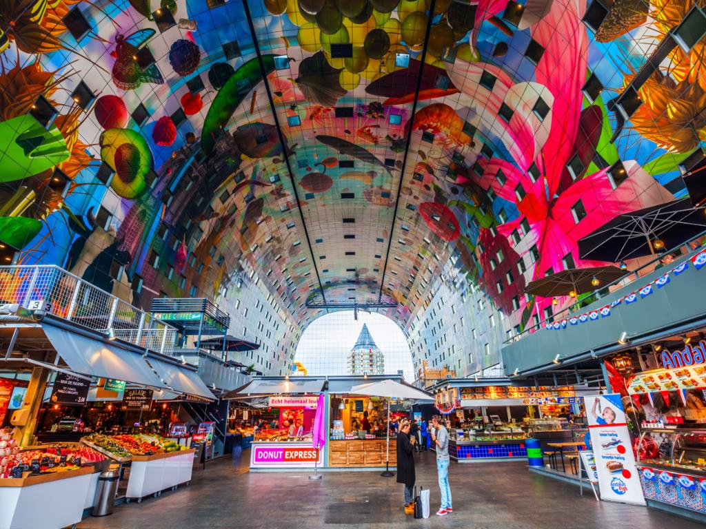 Once in the center urban, we will visit "The man without heart" by Ossip Zadkine, an expressive and imposing sculpture, symbol par excellence of the desire to overcome the Roterdameses. Very close to this statue, we will be welcomed at the VVV or Tourist Information Point of Rotterdam, where we will enjoy an interesting interactive introduction to the city and its history. Later, we will start a walking tour, stopping at emblematic places such as the Church of San Lorenzo, the only medieval building in the city, the famous Cube Houses, Oude Haven or Puerto Viejo and the iconic Markthal, the curious market known to be the first covered by single-family homes. There you will have free time to enjoy the spectacle of smells, flavors and colors, since you can see one of the largest graphic works in the world in its dome.